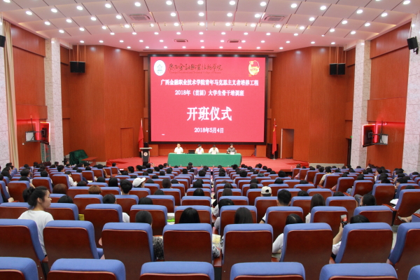 5月4日晚,恰逢“五.四”青年節,我院在西校區一號樓報告廳隆重舉行2018年(首屆)青年馬克思主義者培養工程大學生骨干培訓班開班儀式,黨委書記沈立君,黨委副書記、紀委書記劉華政,各系黨總支書記、負責人,各系團總支負責人,院團委全體委員,培訓班各班班主任及西校區252名學員參加了開班儀式。
