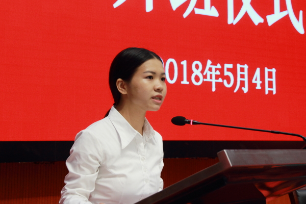 儀式在《光榮啊,中國共青團》團歌中拉開帷幕。黃立冬代表學員講話,表示要珍惜學習機會,將學到的理論知識運用于實踐,以身作則,行為示范,引領校園文化新風尚。