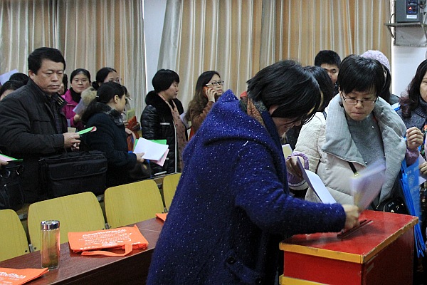 最后,由全體教職員工對校級領導及中層處級干部以無記名投票方式進行年度測評。