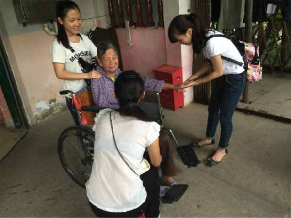 早上八點,盡管氣候陰涼,細雨蒙蒙,卻抵擋不住志愿者們服務的熱心。他們手舉我院院旗,帶著準備好的慰問品,懷著感恩的心前往目的地,為老人們送上溫暖。一到目的地,志愿者們便迅速分成若干小組,為老人們開展服務活動,他們有的打掃衛生、整理內務,有的給老人捶背按摩,有的陪老人聊天解悶、聆聽他們的故事,有的為老人唱起了紅歌,忙得不亦樂乎。志愿者們細致周到的服務得到了老人們的一致好評?;顒咏Y束后,老人們對志愿者們表示感謝,志愿者們依依不舍地離開,并表示一定會再找機會再來看望老人們。