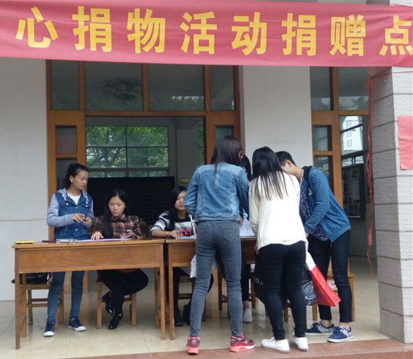 為做好此次活動,團委精心部署,認真做好前期準備工作,提前一周向大中專各班發(fā)放倡議書,并粘貼海報和橫幅,提高宣傳力度。活動當天,青年志愿者協(xié)會的成員們還沒布置好活動現(xiàn)場,就有一些同學迫不及待地來到捐贈點,等待捐贈活動的開始。隨后,一批又一批的同學紛紛到來,慷慨地將自己的衣服、鞋子、課本、文具、護手霜等物品一一捐贈。許多教職工也踴躍地參與到捐贈活動中來。沒過多久,青年志愿者協(xié)會成員準備的幾個物品袋便裝得滿滿的。
