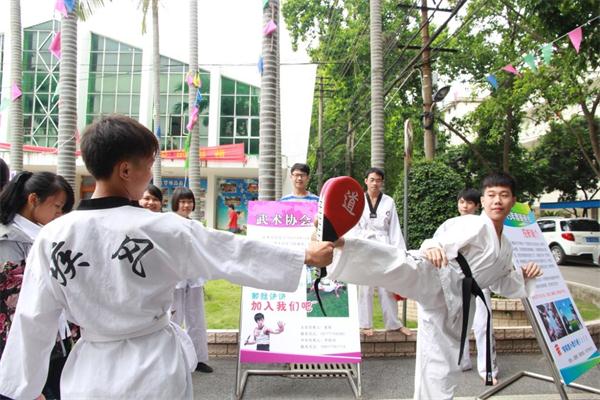 招新現(xiàn)場(chǎng),各社團(tuán)精心布置了自己的招新攤點(diǎn),桌子、凳子、海報(bào)、音響等一應(yīng)俱全,各社團(tuán)大顯身手,各自用獨(dú)特的方式對(duì)社團(tuán)進(jìn)行了宣傳。只見(jiàn)武術(shù)協(xié)會(huì)的成員身著武術(shù)服,向?qū)W弟學(xué)妹們彰顯他們武術(shù)“拼搏忍耐奮斗”的頑強(qiáng)精神;舞蹈社的成員們,更是現(xiàn)場(chǎng)舞動(dòng)他們靈活的身姿,大顯舞蹈風(fēng)采;音樂(lè)社的成員們高調(diào)帶來(lái)吉他彈唱,勢(shì)要先“聲”奪人……