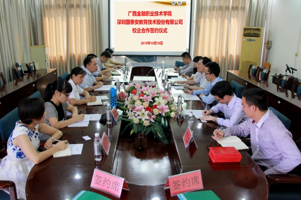 10月19日下午,深圳國泰安教育技術股份有限公司執行總裁王春雷、金融教育高校事業部總經理周志勇等一行六人到我院進行金融專業建設交流,謝沛善副院長熱情接待,教務科研處副處長李琪、投資與保險系主任梁云、現代教育技術中心主任陳浩以及金融系教師部分教師參加交流會。