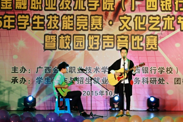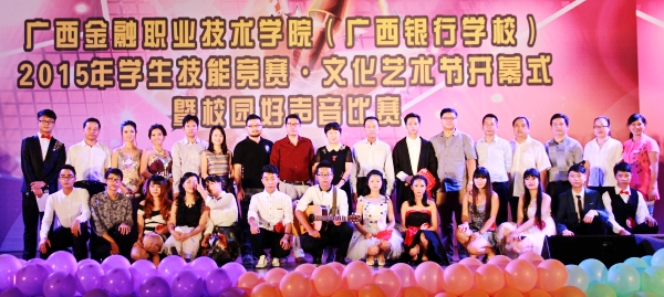 10月19日晚,2015年廣西金融職業技術學院(廣西銀行學校)隆重舉行2015年學生技能競賽· 文化藝術節開幕式暨校園好聲音決賽。旨在提供學生很多展示專業技能與文藝特長的平臺,幫助學生把握青春、放飛夢想、出彩人生。開幕式由學生工作與招生就業處、教務科研處、團委共同承辦。院長沈立君,黨委副書記、紀委書記劉華政,副院長謝沛善及中層領導出席本次開幕式。