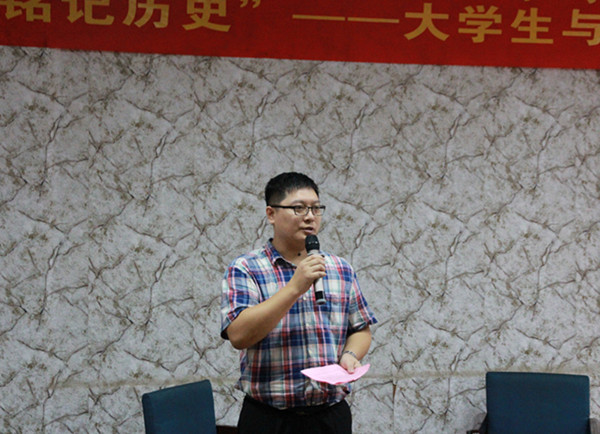 作為尋找、慰問和關愛抗戰老兵的志愿者,鄭加莉女士則通過自身的經歷和感受,與大家分享了抗戰老兵們的抗戰故事,并號召青年學生踴躍加入到關愛抗戰老兵志愿者隊伍中來。