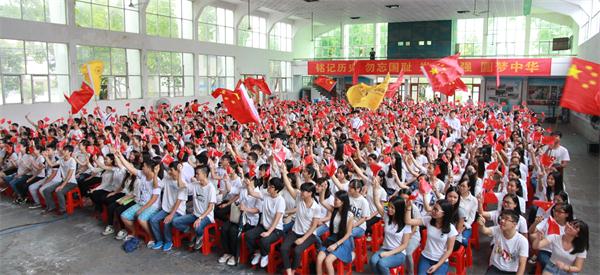 紀念大會尚未開始,校大禮堂內已人滿為患、座無虛席,廣大師生滿懷激動的心情期待大會的到來。上午10:00,在激昂的軍樂聲中,閱兵式拉開了序幕。當習近平主席的檢閱車從天安門城樓緩緩駛出,現場氣氛高漲,大禮堂內響起了雷鳴般的掌聲。隨后,空中護旗方隊、抗戰老同志乘車方隊、徒步方隊、外軍方隊及代表隊、裝備方隊、空中梯隊等數十個方陣隊和坦克、戰車、導彈、榴彈炮、裝甲突擊車、指揮機、空戰機等新型武器一一接受檢閱。莊嚴肅穆的軍容、英氣逼人的軍姿、鏗鏘有力的步伐、威武雄壯的氣勢、精良先進的武器裝備令全體師生震撼不已。看到抗戰勝利70周年以來,祖國取得了如此偉大的成就,許多老師和同學眼里飽含激動、自豪和驕傲的淚水,大家紛紛揮舞著手中的紅旗,為祖國送上深情的祝福。整個閱兵儀式,觀看現場氣氛莊嚴、熱烈、肅穆。