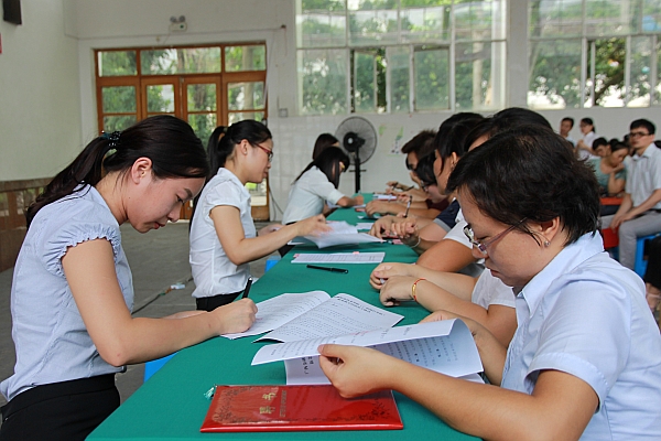 最后,覃書記作重要講話,從學院、學校體制、辦學規模、新校區建設、校企合作等四個方面對學院一年來的工作進行了匯報,充分肯定了廣大教師為人師表、無私奉獻、任勞任怨為學院發展做出的努力和貢獻,特別強調希望老師們牢記使命,勇于擔當,繼續深入推進教育教學改革的發展理念,同時還對全體教師提出了三點殷切的希望和要求:1. 注重德能兼備,著力打造一支師德高尚、業務精湛的教師隊。2. 提高教育質量,努力辦好人民滿意的職業教育。3. 注重先進人物宣傳,崇尚知識、尊師重教,著力形成推動我院和我校職業教育發展的強大合力。