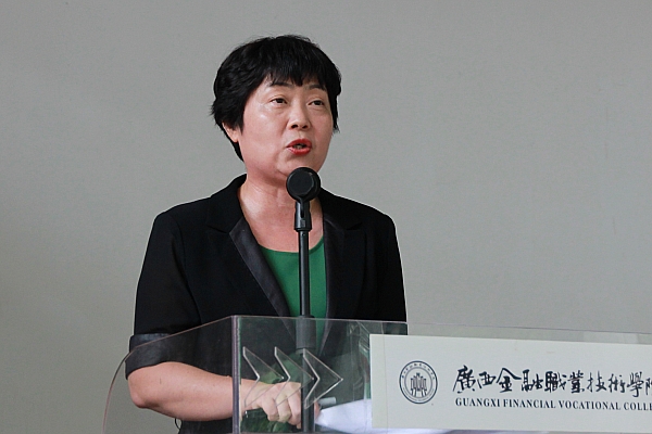 隨后,十佳教師代表韋媛老師、十佳服務之星代表龍騰涵老師相繼發言,他們從自身實踐出發,向大家分享了他們在教育教學工作中寶貴的成長經驗和心得體會:教學沒有捷徑,十年如一日的潛心付出是做好本職工作的關鍵。老教師代表馬增慈老師在發言中感慨萬千的回顧了學校一路走來的風風雨雨和如今的輝煌成就,他飽含深情的說:作為老教師,看到學校今天的發展成就非常激動、欣慰,希望一代又一代的新老師能積極進取,努力開拓,為學校,為社會培養更多金融人才做出更大的貢獻。