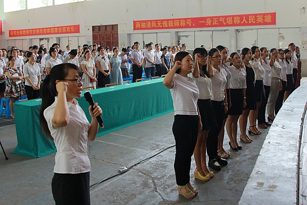 同時,學院(校)繼續開展“以老帶新”的青藍工程,舉行新老班主任、新老教師結對子簽約儀式,幫助新教師盡快成長。在金融系歐捷老師的帶領下,全體新錄聘員工進行了入職宣誓。