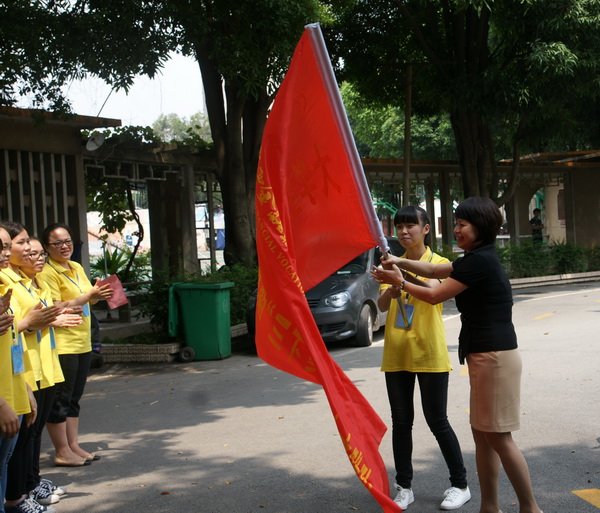 接著,社會實踐學生代表上臺發言;隨后,覃書記為“三下鄉”社會實踐活動團隊授旗;最后,學生進行出征宣誓。