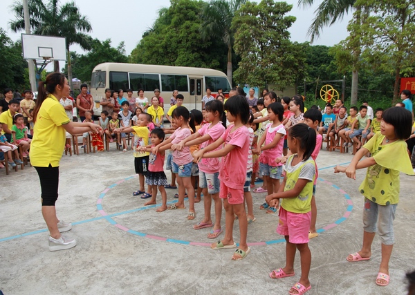 在校團委書記朱麗君的帶領下,志愿服務隊全體師生與兒童一起開展了丟手絹、學手語、唱歌、跳舞等系列豐富多彩的文體活動,同時朱老師還給學生上了一堂生動的音樂輔導課,深受小朋友們喜愛。通過開展面對面的交流,鼓勵孩子們要好好學習,做一個懂禮貌、愛祖國、有才能、會感恩的好學生。