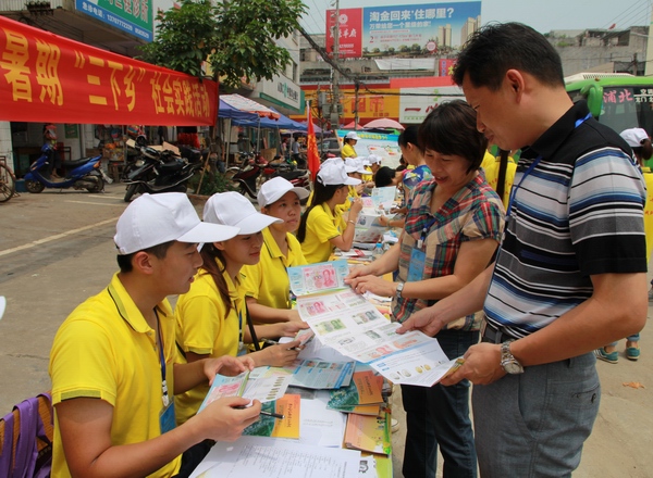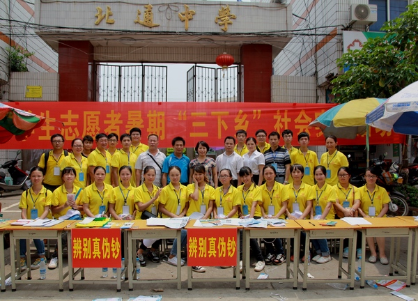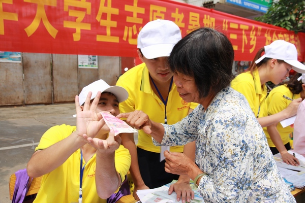 期間,覃書(shū)記一行也親自參與到我院開(kāi)展的點(diǎn)鈔技能、辨別真?zhèn)吴n、金融防范知識(shí)、社會(huì)經(jīng)濟(jì)狀況調(diào)查等志愿服務(wù)項(xiàng)目,并深入宿舍、食堂了解關(guān)心志愿服務(wù)隊(duì)生活。在聽(tīng)取了我院志愿者服務(wù)隊(duì)開(kāi)展工作情況匯報(bào)后,她充分肯定了服務(wù)隊(duì)在特色活動(dòng)工作上取得的成效。覃書(shū)記指出,三下鄉(xiāng)是一次很寶貴的社會(huì)實(shí)踐體驗(yàn),經(jīng)過(guò)親身體會(huì)會(huì)讓人變得更加成熟穩(wěn)重,希望全體隊(duì)員們要大力發(fā)揚(yáng)不怕苦不怕累的優(yōu)良作風(fēng),珍惜機(jī)會(huì),真正把社會(huì)實(shí)踐活動(dòng)做好做實(shí)。