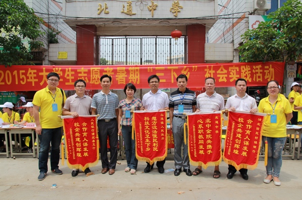 隨后,覃書(shū)記代表學(xué)院分別給北通中學(xué)、北通鎮(zhèn)人民政府、浦北國(guó)民村鎮(zhèn)銀行、人民銀行浦北縣支行贈(zèng)送了錦旗,并對(duì)他們的大力支持和幫助表示衷心的感謝。尤其希望通過(guò)開(kāi)展科技、文化、衛(wèi)生下鄉(xiāng)這個(gè)平臺(tái),雙方達(dá)成更深層次的合作,共促職教事業(yè)的發(fā)展。