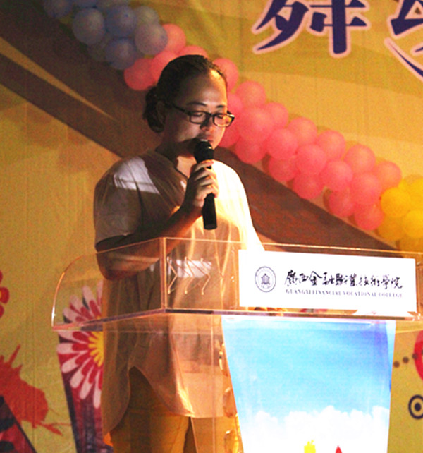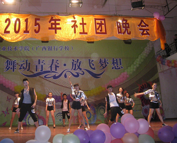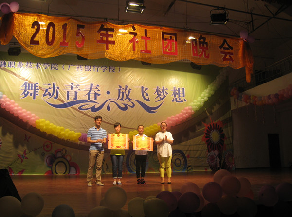 5月28日晚7:30,我校大禮堂內流光溢彩,座無虛席,2015年社團文化藝術節閉幕晚會在此隆重舉行。學生科副科長、校團委書記朱麗君,學生科副科長唐運杰,全體學生科老師及廣西大學、廣西物資學校等18所大中專兄弟院校嘉賓出席并觀看了晚會。