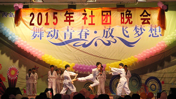 接著,各社團依次登臺表演,將他們精心準備的節目一一展現給觀眾。大專舞蹈社帶來的街舞《爵C舞D》酷炫精彩,個性十足;音樂社的原創彈唱曲目《寫給他》充分展現了我校學子的音樂創作才能;獨舞《禮儀之邦》的表演者以優美的舞姿精彩地演繹了中國古代的禮儀文化;小品《雞同魚講》生動活潑,幽默風趣,觀眾忍俊不禁;武術協會的武術表演精彩紛呈、引爆全場,將中華武術的博大精深展現得淋漓盡致,成為了整場晚會的亮點;外校嘉賓帶來的鬼步舞《曳舞天下》表演形式獨特,令人耳目一新,將晚會推向了高潮。
