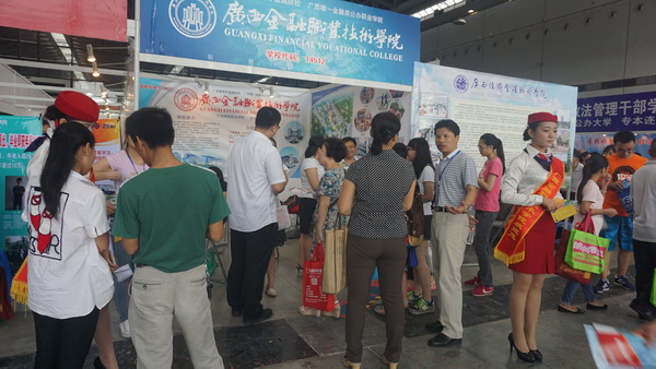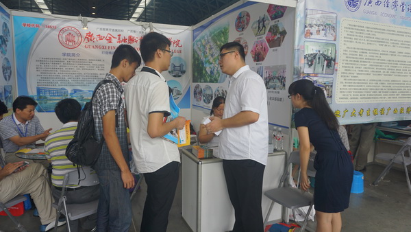 為方便考生了解各高校招生情況,廣西2015年高考咨詢會于6月25、26日在南寧市會展中心舉行。我院劉華政副書記親自帶隊到場開展招生宣傳工作,在石利軍主任的策劃安排下,學生工作與招生就業處副處長唐雪濤、金融部副主任歐捷、會計部副主任韋曉嵐、金融部莫嘉玲、招生就業科胡秀娟等7名老師一同參與完成此項工作。