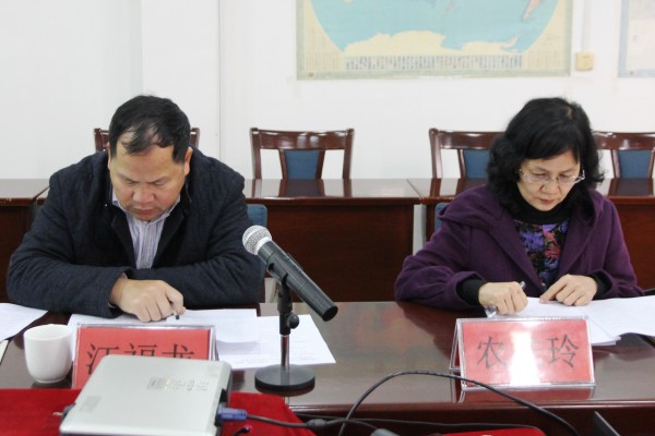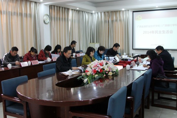 1月15日上午,我院(校)在五樓會議室召開了2014年度領(lǐng)導(dǎo)干部民主生活會。自治區(qū)高校工委、教育廳機關(guān)黨委專職副書記、機關(guān)工會主席江福龍,紀(jì)檢監(jiān)察室副處級紀(jì)檢監(jiān)察員、機關(guān)黨委紀(jì)委書記農(nóng)桂玲參加了會議。會議由學(xué)院黨委書記覃艷娟主持。