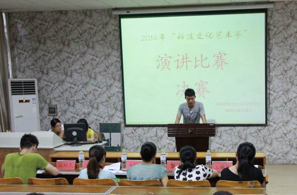 10月28日下午,廣西金融職業(yè)技術(shù)學(xué)院、廣西銀行學(xué)校科技文化藝術(shù)節(jié)之演講比賽決賽在電教樓一樓多媒體教室舉行。基礎(chǔ)教學(xué)部朱梅英老師、柳歡老師、王雅旎老師、黎菲老師、張祥久老師出席并擔(dān)任評委。