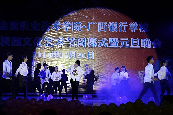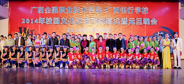 12月30日晚8時(shí),“廣西金融職業(yè)技術(shù)學(xué)院、廣西銀行學(xué)校2014年校園科技文化藝術(shù)節(jié)閉幕式暨2015年元旦文藝晚會(huì)”在大禮堂激情上演。學(xué)院覃艷娟書記,學(xué)院院長(zhǎng)、廣西銀行學(xué)校校長(zhǎng)沈立君等領(lǐng)導(dǎo)親臨現(xiàn)場(chǎng)欣賞了晚會(huì),出席晚會(huì)的還有廣西金融職業(yè)技術(shù)學(xué)院、廣西銀行學(xué)校全校師生、兄弟學(xué)校的代表。