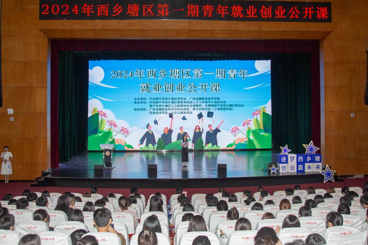 為深入貫徹落實(shí)黨的二十大精神、習(xí)近平總書記關(guān)于新時(shí)代人才工作及青年就業(yè)工作系列重要指示批示精神,進(jìn)一步深化校政合作,提高服務(wù)青年人才就業(yè)創(chuàng)業(yè)工作水平,幫助和鼓勵(lì)畢業(yè)生留在西鄉(xiāng)塘區(qū)就業(yè)創(chuàng)業(yè),學(xué)校與西鄉(xiāng)塘區(qū)人社局聯(lián)合舉辦2024年南寧市西鄉(xiāng)塘區(qū)第一期青年就業(yè)創(chuàng)業(yè)公開課暨“專而精”校園雙選會(huì)活動(dòng)。