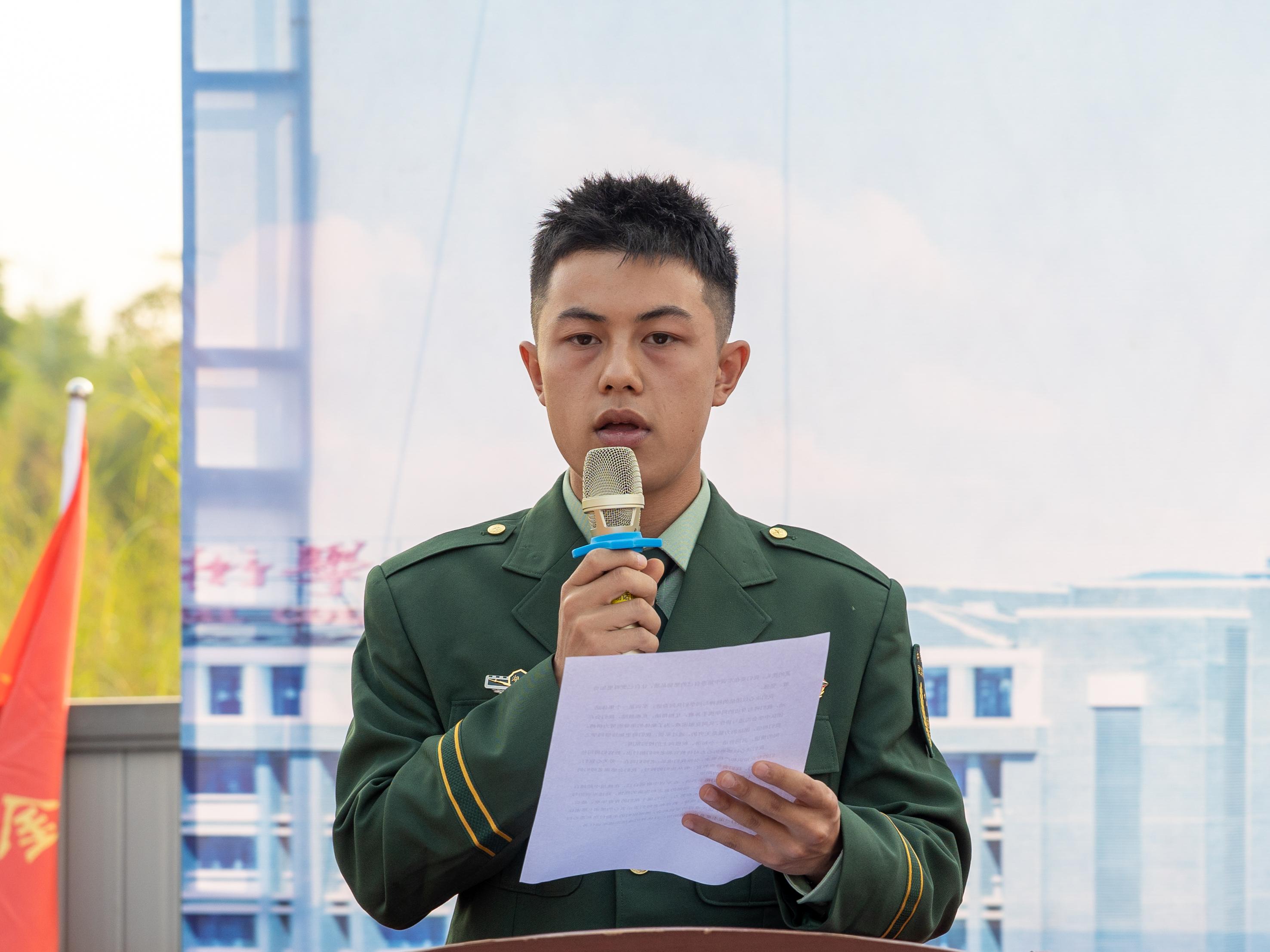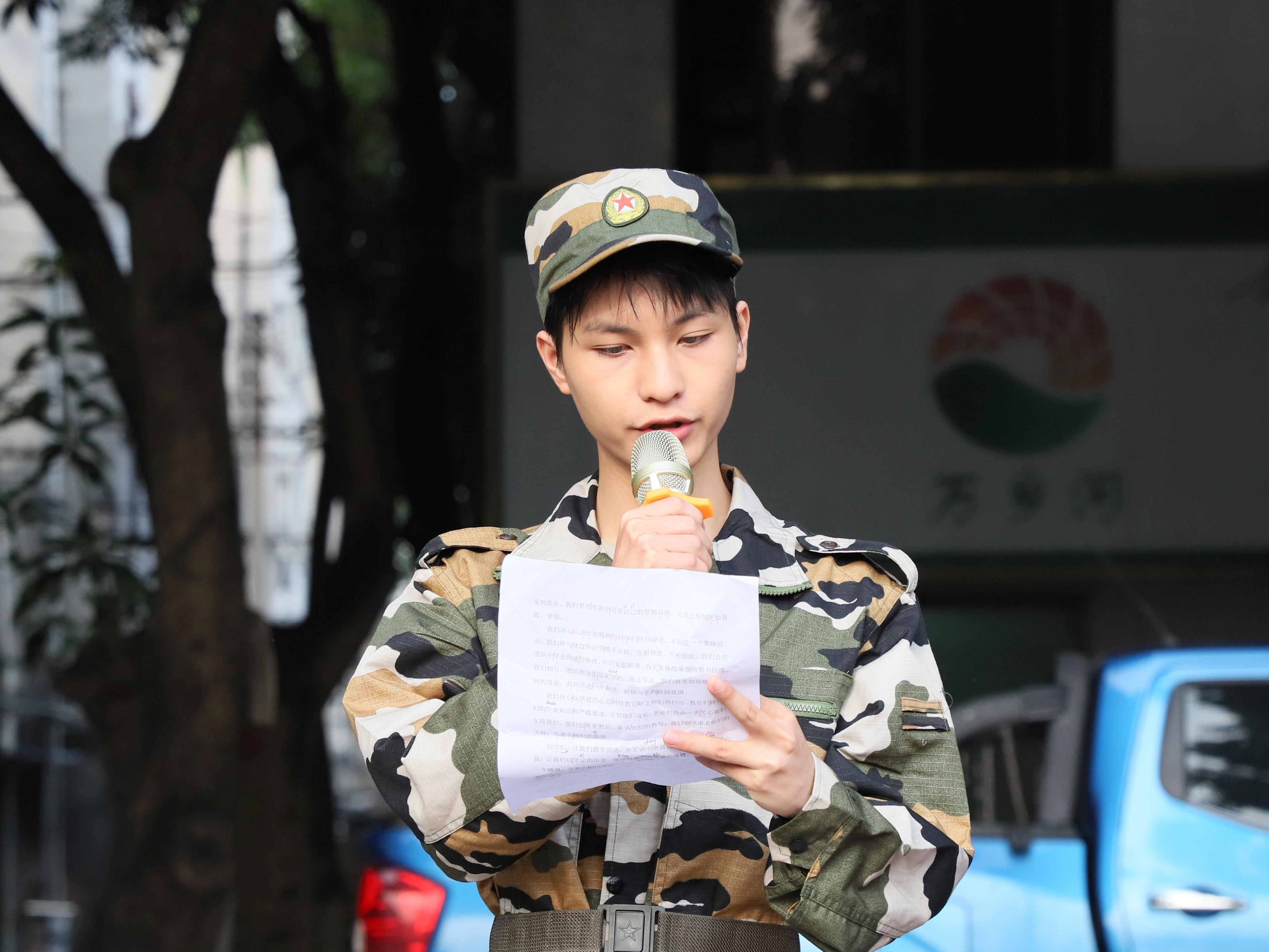 會計學院大數據與會計2402班周志榮同學、數字貿易學院(工商管理學院)跨境電子商務2402班莫可凡同學作為學生代表,他們莊嚴承諾,在軍訓中將尊重教官、服從命令,克服困難,培養吃苦耐勞的精神,并希望在這次軍訓中展現出新時代大學生的風采。