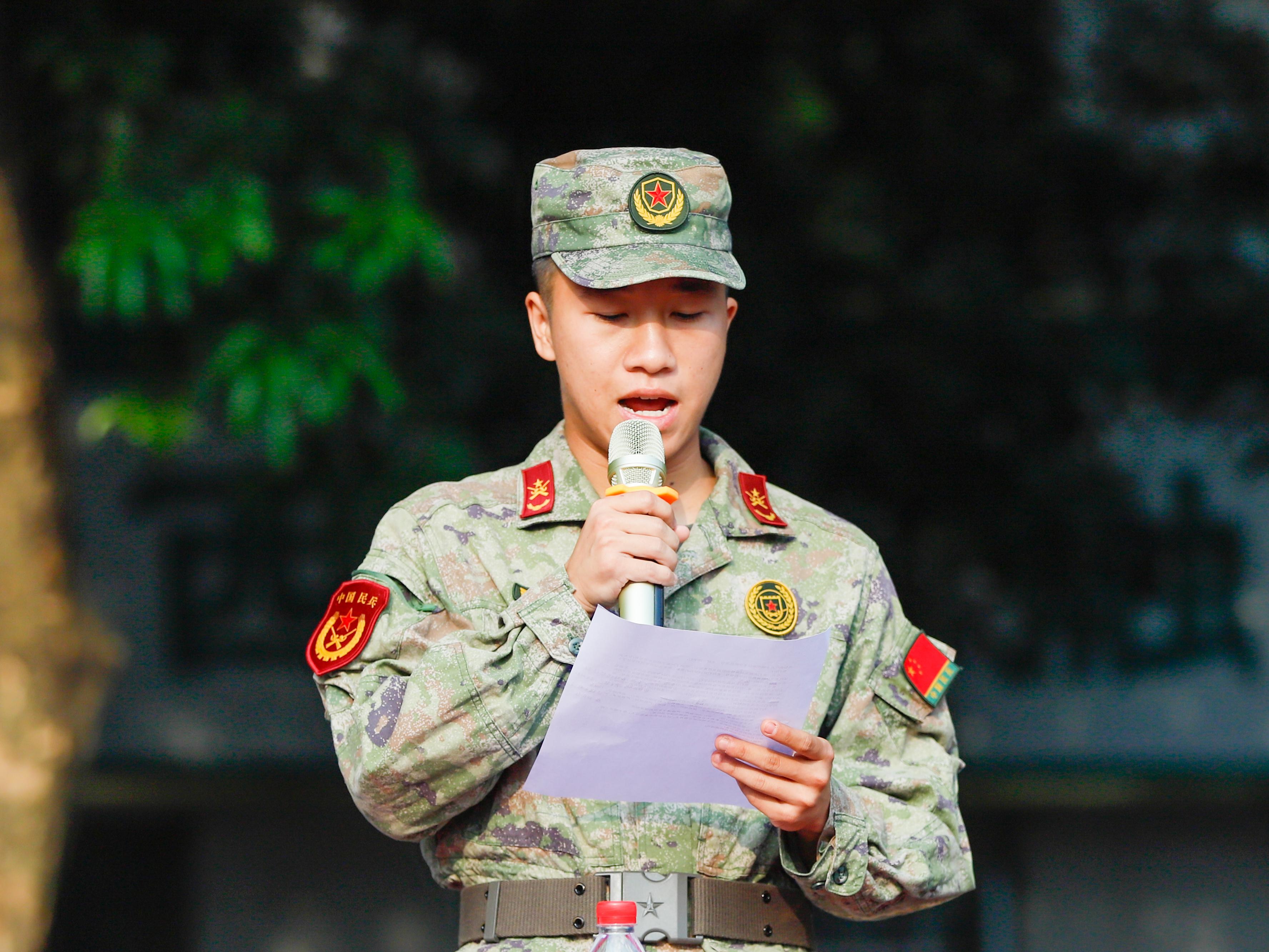 邕寧區人武部副部長韋文堂、軍訓總教官李金城在兩校區講話,要求本次軍訓新生遵守規定,嚴于律己,科學施練,配合工作,營造好教官與學生,學生與學生之間融洽的氛圍,在軍訓中要以軍人的標準嚴格要求自己,發揚不怕苦、不怕累的精神,挑戰自我,超越自我。