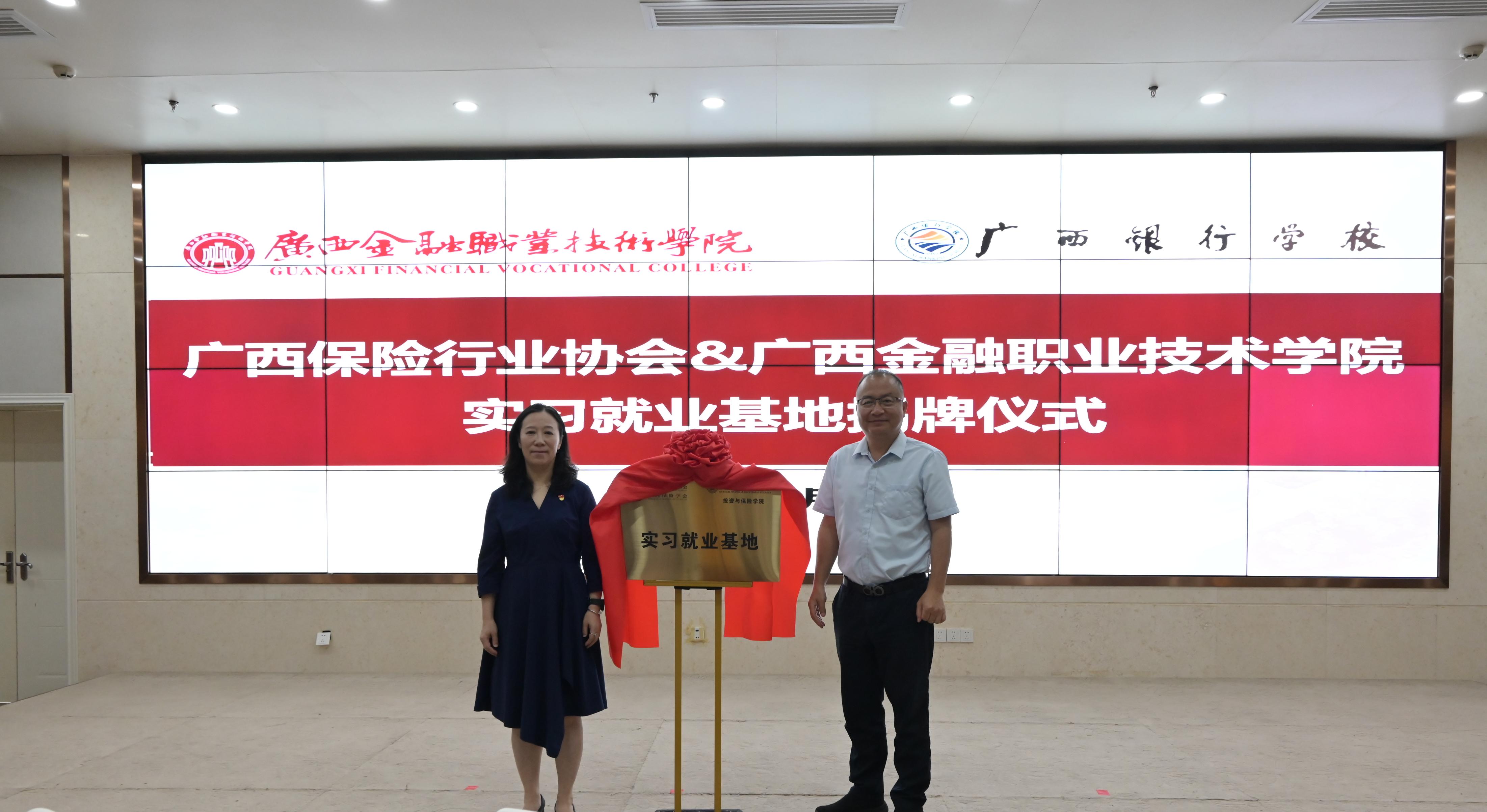 在全體參會(huì)人員的見證下,李河常務(wù)副會(huì)長(zhǎng)與莫海燕校長(zhǎng)雙方簽署合作協(xié)議,共同為“廣西保險(xiǎn)行業(yè)協(xié)會(huì)與廣西金融職業(yè)技術(shù)學(xué)院實(shí)習(xí)就業(yè)基地”揭牌。