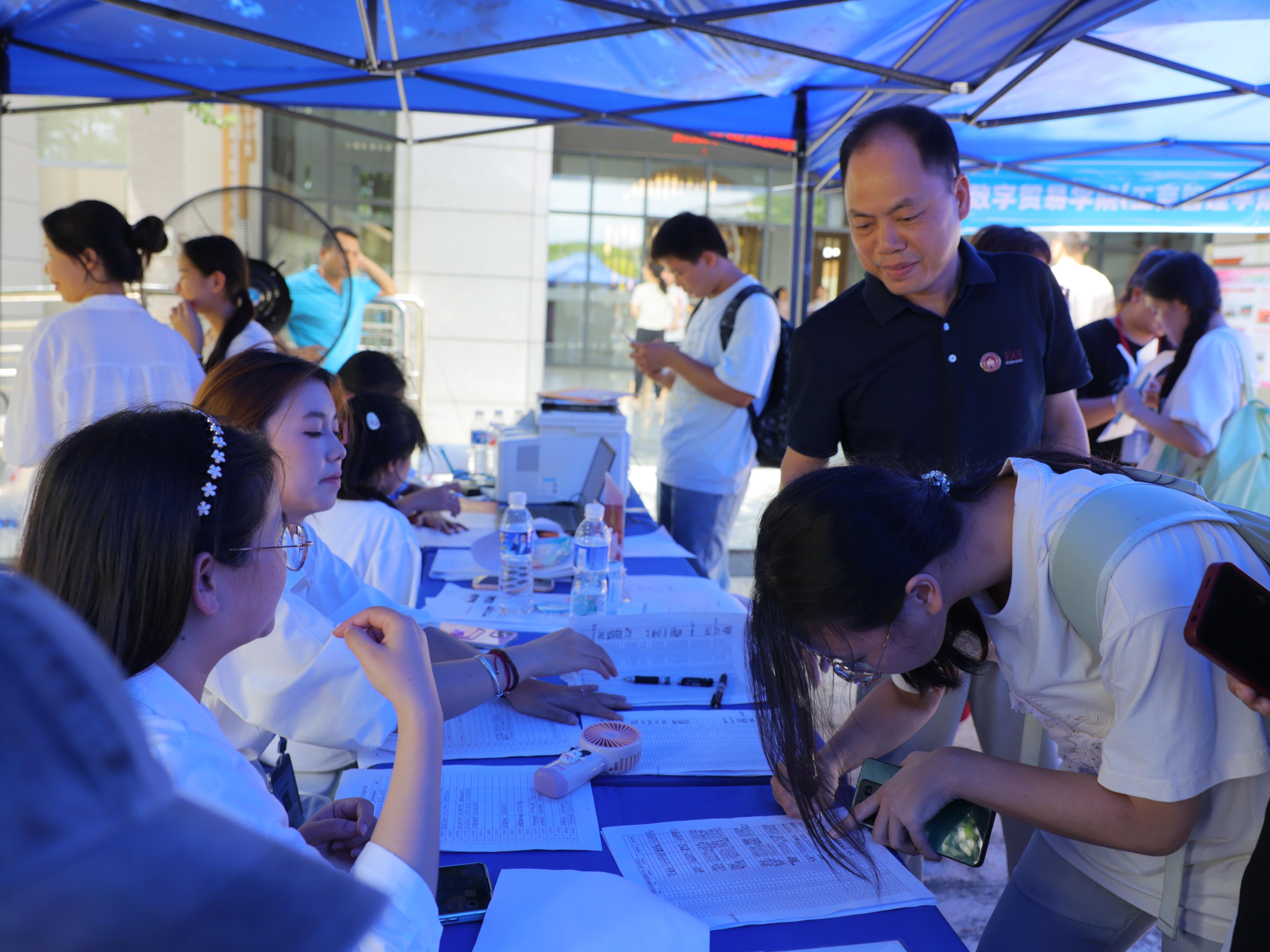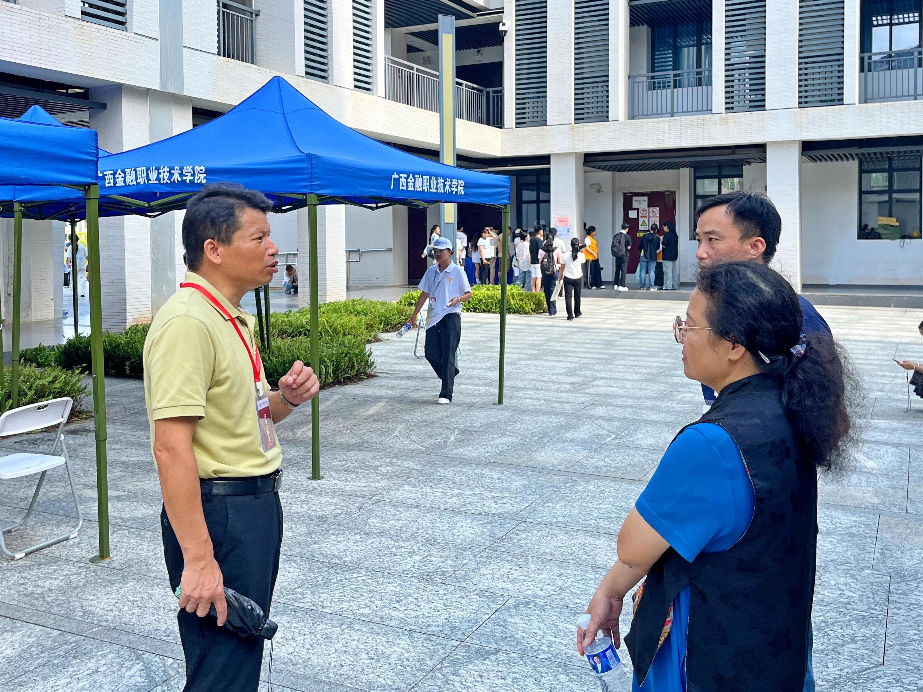 為確保迎新各項工作順利開展,學(xué)校領(lǐng)導(dǎo)現(xiàn)場指導(dǎo)工作,親切慰問迎新志愿者和工作人員,并與前來報到的新生熱情交流。