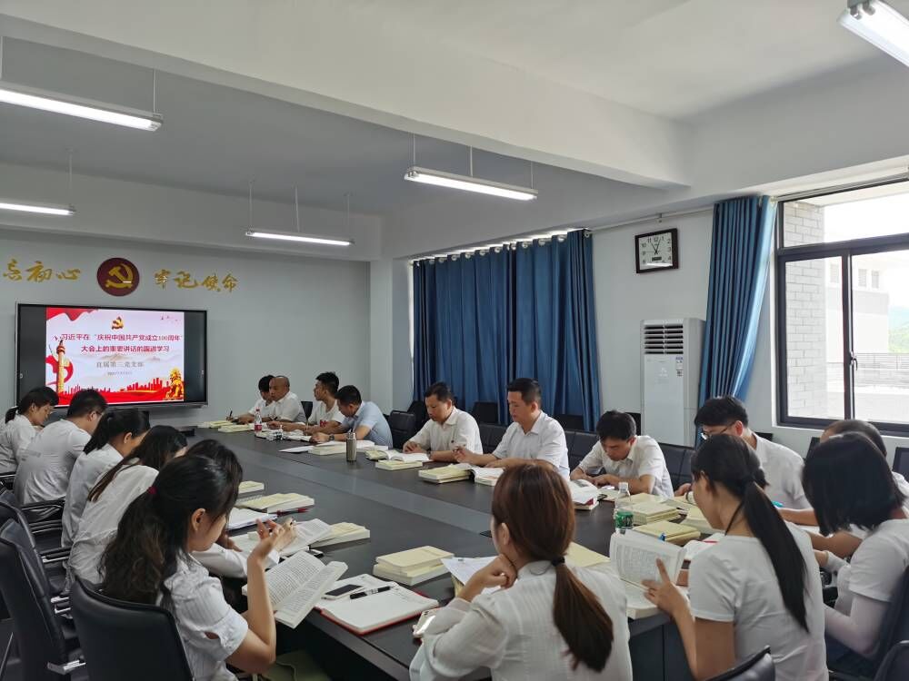 慶祝大會結束后,直屬第三黨支部全體黨員在西校區511開展學習習近平總書記在慶祝中國共產黨成立100周年大會上的重要講話。支部書記周海峰同志主持會議,劉華政同志以普通黨員和黨員校領導的雙重身份出席會議。
