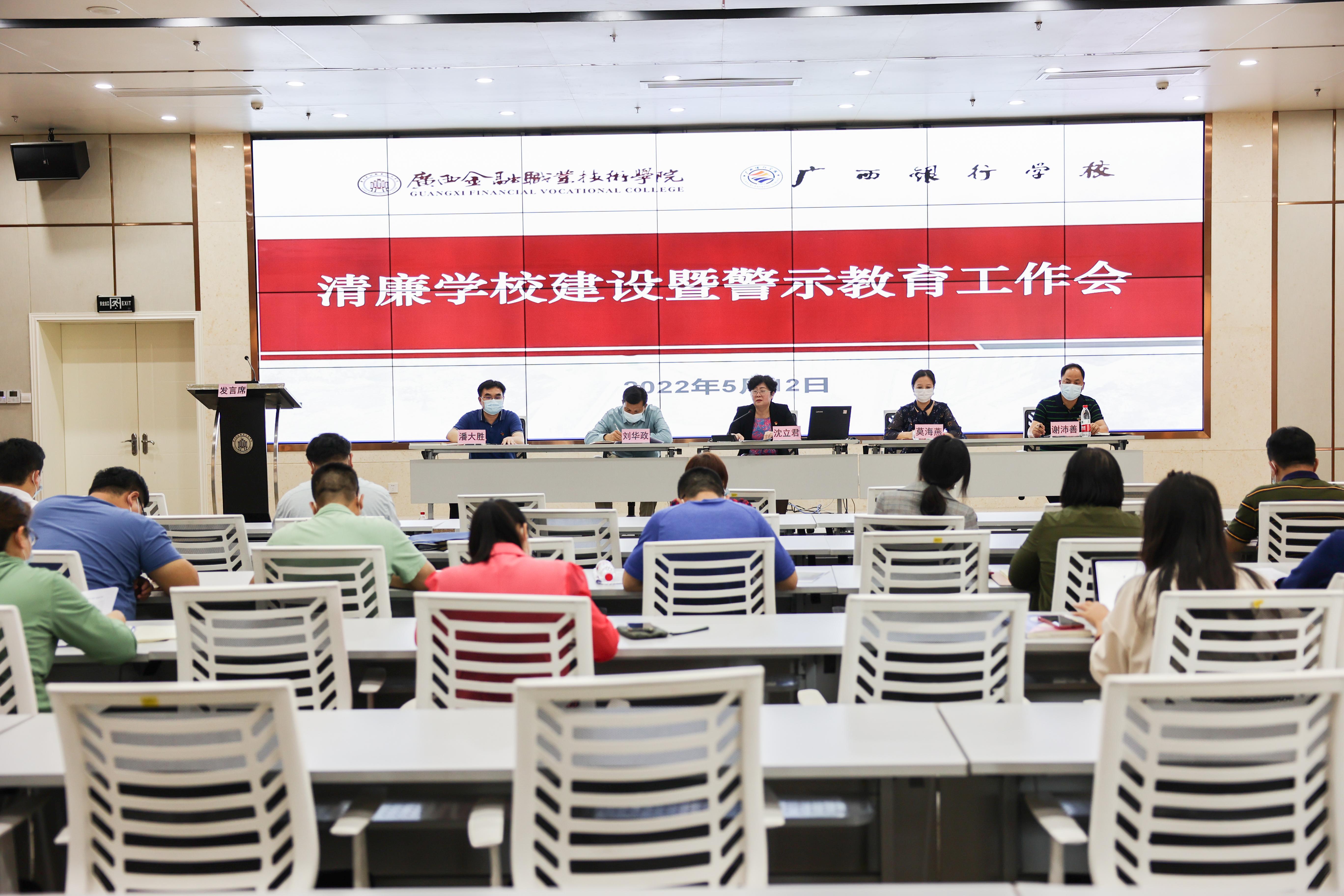 會上,各單位負責人分別從推進情況、存在問題及下一步打算匯報了清廉學校的建設情況。黨委書記沈立君同志充分肯定了各部門取得的工作成效,同時也指出了存在問題,然后組織大家深入學習了《中共廣西金融職業技術學院(廣西銀行學校)委員會關于大力推進清廉學校建設實施方案》,并明確提出清廉學校建設10個方面的重點任務和30項具體措施。
